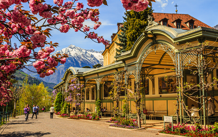 - Weltberühmte Kurstadt Meran: Tradition & Moderne, ländlicher Charme & städtisches Flair, mit mildem Klima & mediterraner Vegetation erwarten Sie in der wunderschönen Kurstadt. Rückreise zum Hotel mit Abstecher zu den blühenden Gärten von Schloss Trautmannsdorf oberhalb der Stadt über das Eisacktal und entlang der Etsch.